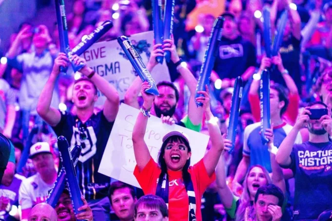 Esports: Grand Final Liga Overwatch29 Sep 2019; Philadelphia, PA, AS; Fans bereaksi selama acara e-sports Grand Finals Liga Overwatch antara Vancouver Titans dan San Francisco Shock di Wells Fargo Center. Kredit Wajib: Bill Streicher-Imagn Images