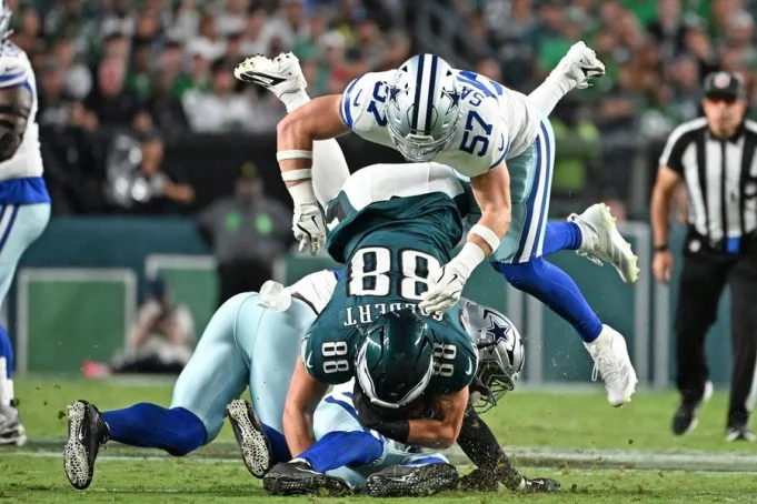 Goedert, 30, duduk ketiga praktik minggu ini setelah mengalami cedera dan secara resmi dikesampingkan pada laporan cedera terakhir tim. Veteran itu menangkap 42 operan untuk 496 yard dan dua gol dalam 10 pertandingan tahun lalu, dan memimpin Eagles dalam menerima yard dengan 215 selama menjalankan postseason mereka. Dia juga memiliki dua resepsi untuk 27 yard dalam kemenangan 40-22 Super Bowl di Philadelphia atas Kansas City.