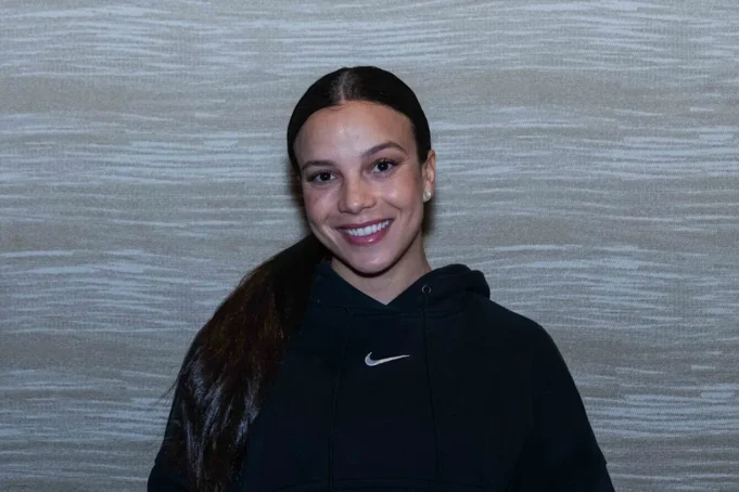 Penyerang Portland Thorns FC Sophia Wilson, diwawancarai pada NWSL Media Day di Westin Bonaventure pada 29 Januari 2026 di Los Angeles, California.