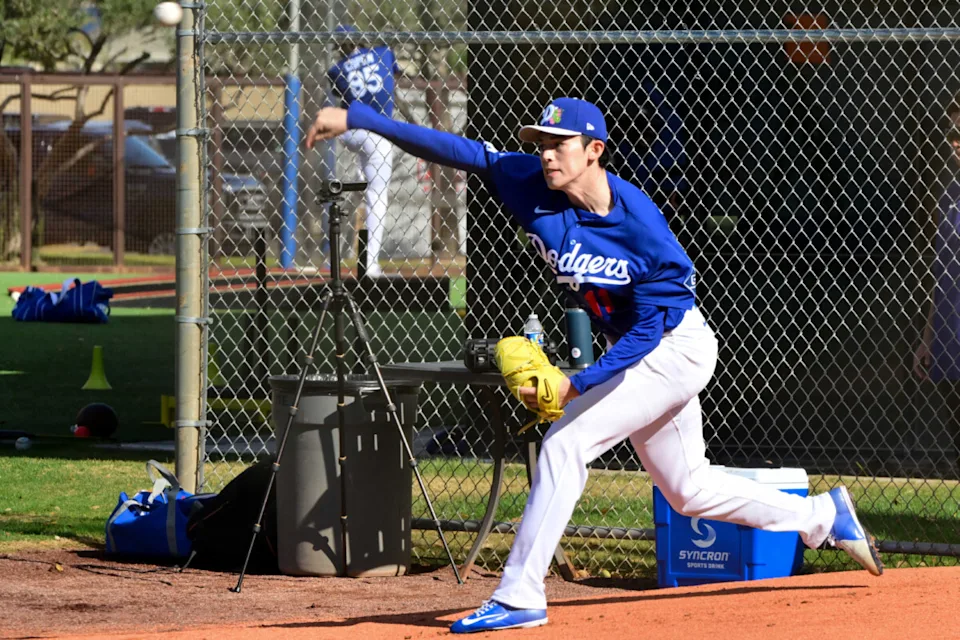 17 Februari 2026; Glendale, AZ, AS; Pelempar Los Angeles Dodgers Roki Sasaki (11 melempar selama latihan Musim Semi di Camelback Ranch. Kredit Wajib: Gambar Matt Kartozian-Imagne
