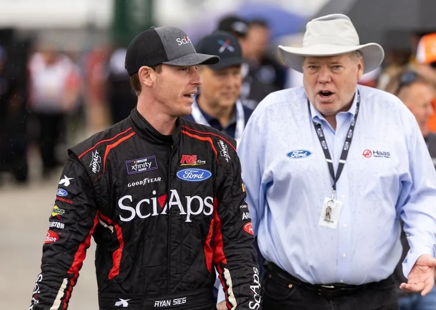 NASCAR XFINITY: United Rentals 300 Kualifikasi 15 Feb 2025; Pantai Daytona, Florida, AS; Pengemudi NASCAR XFINITY Collection Ryan Sieg (kiri) dengan pejabat tim pabrik Haas Joe Custer selama kualifikasi untuk United Rentals 300 di Daytona International Speedway. Kredit Wajib: Mark J. Rebilas-Imagn Images
