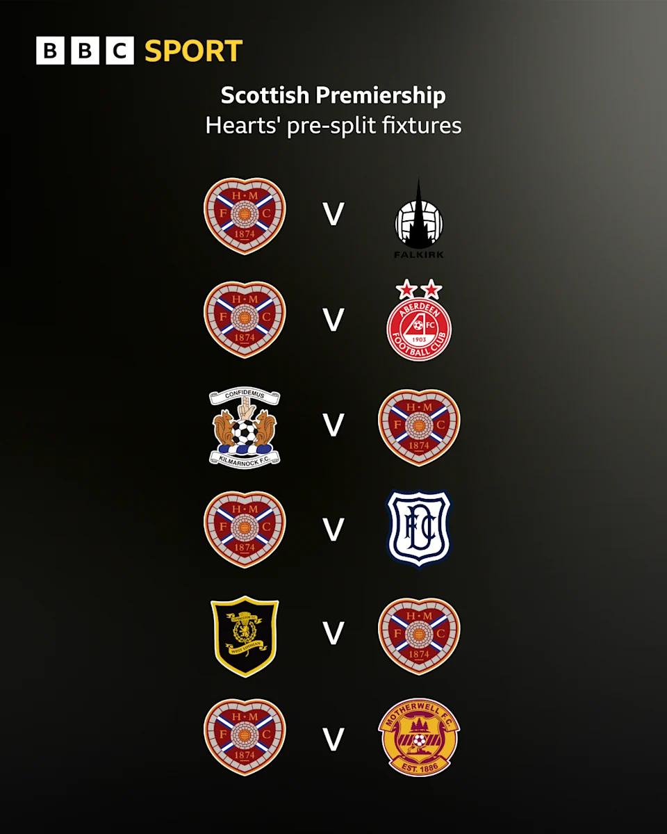 Hearts memainkan empat dari enam pertandingan liga berikutnya di Tynecastle, di mana mereka masih belum terkalahkan di liga.