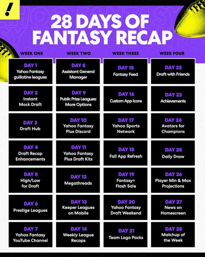 Bulan lalu telah luar biasa di sini di Yahoo Dream. Kami meluncurkan kampanye fantasi 28 Days kami untuk menghormati 28 tahun Yahoo Fantasy Football. Perjalanan ini membuat kami meluncurkan fitur baru selama 28 hari berturut -turut di bulan Agustus, semua menuju tujuan membuat pengalaman sepak bola fantasi Yahoo Anda yang terbaik.