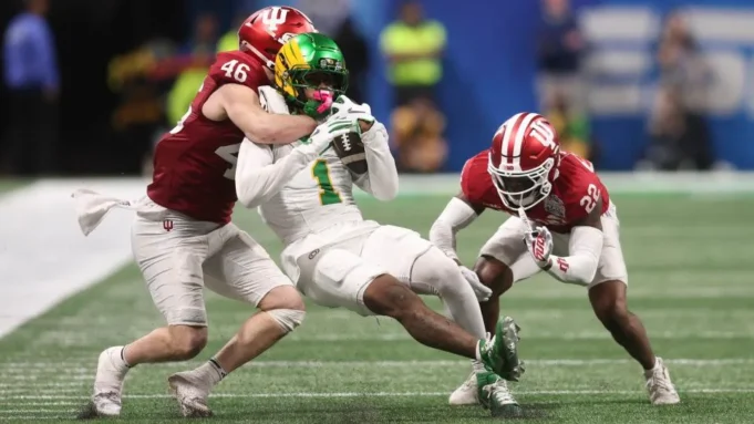 Dengan pembongkaran Oregon 56 – 22, Indiana telah melewati Playoff Sepak Bola Perguruan Tinggi ini dengan cara yang belum pernah terjadi sebelumnya dalam olahraga ini selama bertahun-tahun, jika pernah. Dalam tiga pertandingan terakhir, Hoosiers berhasil menahannya Negara Bagian Ohio menjadi 10 poin, Alabama ke tiga dan Oregon ke 21, meskipun itu harusnya diberi tanda bintang. The Ducks mencetak touchdown terakhir mereka dengan sisa waktu 34 detik dalam permainan.