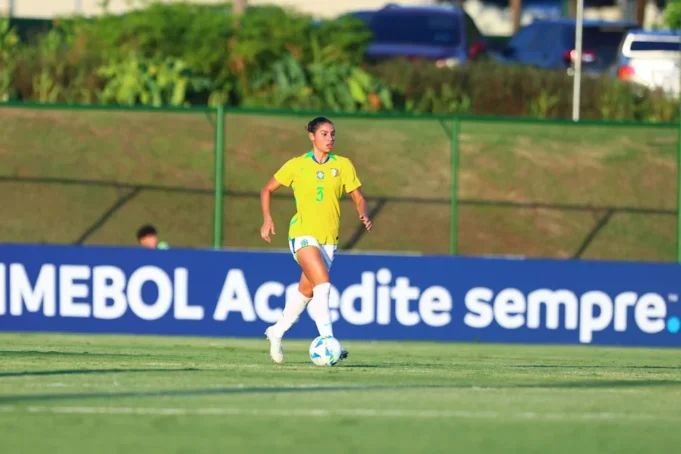 Sofia saat laga melawan Paraguay di laga pertama babak last Kejuaraan Amerika Selatan U- 20 Kredit: Gambar Staf/ CBF