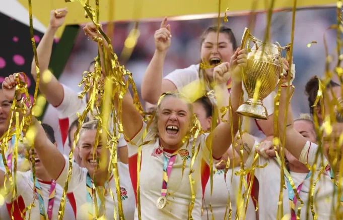 Inggris sedang bersorak menuju pintu masuk dan trofi – yang mereka angkat untuk ketiga kalinya setelah kemenangan pada tahun 1994 dan 2014 – tetapi juga menuju masa depan di mana serikat rugby wanita berada di peta dan di tempat dari mana tidak ada jalan untuk kembali.