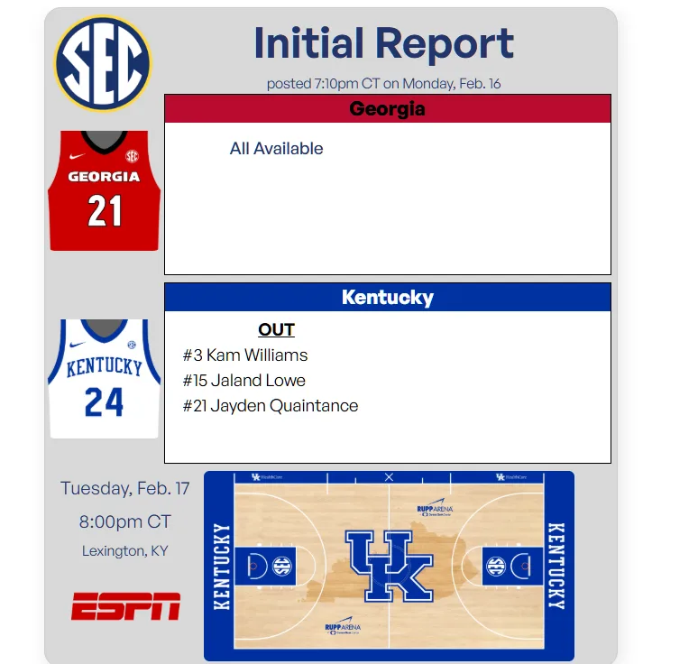 Ini adalah pertandingan yang sangat penting bagi Cats karena mereka ingin mengimbangi perlombaan klasemen SEC, sekaligus tetap berada di garis unggulan mereka untuk Turnamen NCAA. Bisakah mereka bangkit kembali setelah kekalahan telak di Gainesville? Kami akan segera mengetahuinya, dan mereka akan melakukannya sekali lagi dengan roster yang sama.