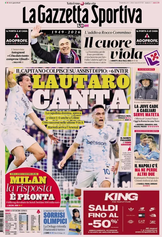 Pemimpin mendominasi, menyia-nyiakan dan menang 1 -0 di Udine. Delapan kemenangan dalam sembilan pertandingan terakhir di Serie A. Collection tiba pada hari Selasa.