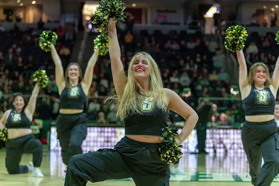 Tim dansa Siena tampil saat pertunjukan turun minum melawan Quinnipiac di MVP Sector di Albany pada hari Jumat, 13 Februari 2026 (Stephen Weaver)