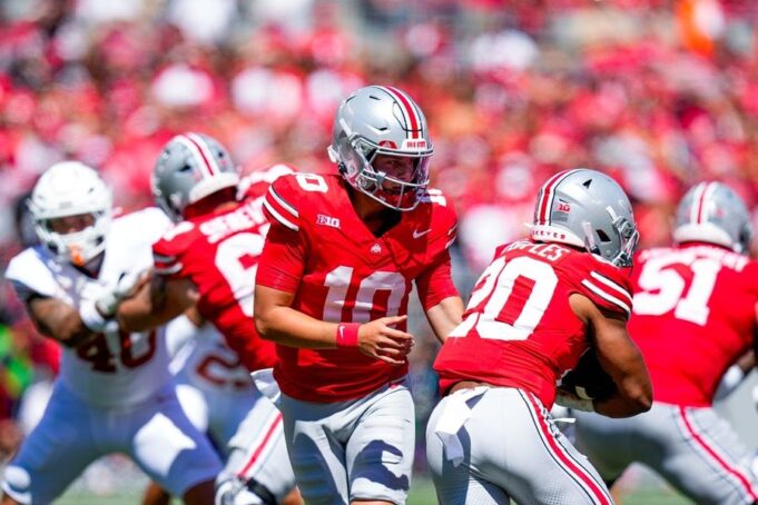 Kemenangan pembukaan musim Ohio State atas Texas mengirim Buckeyes ke No. 1 dan Longhorns anjlok dalam jajak pendapat Top 25 Associated Press, dirilis Selasa.