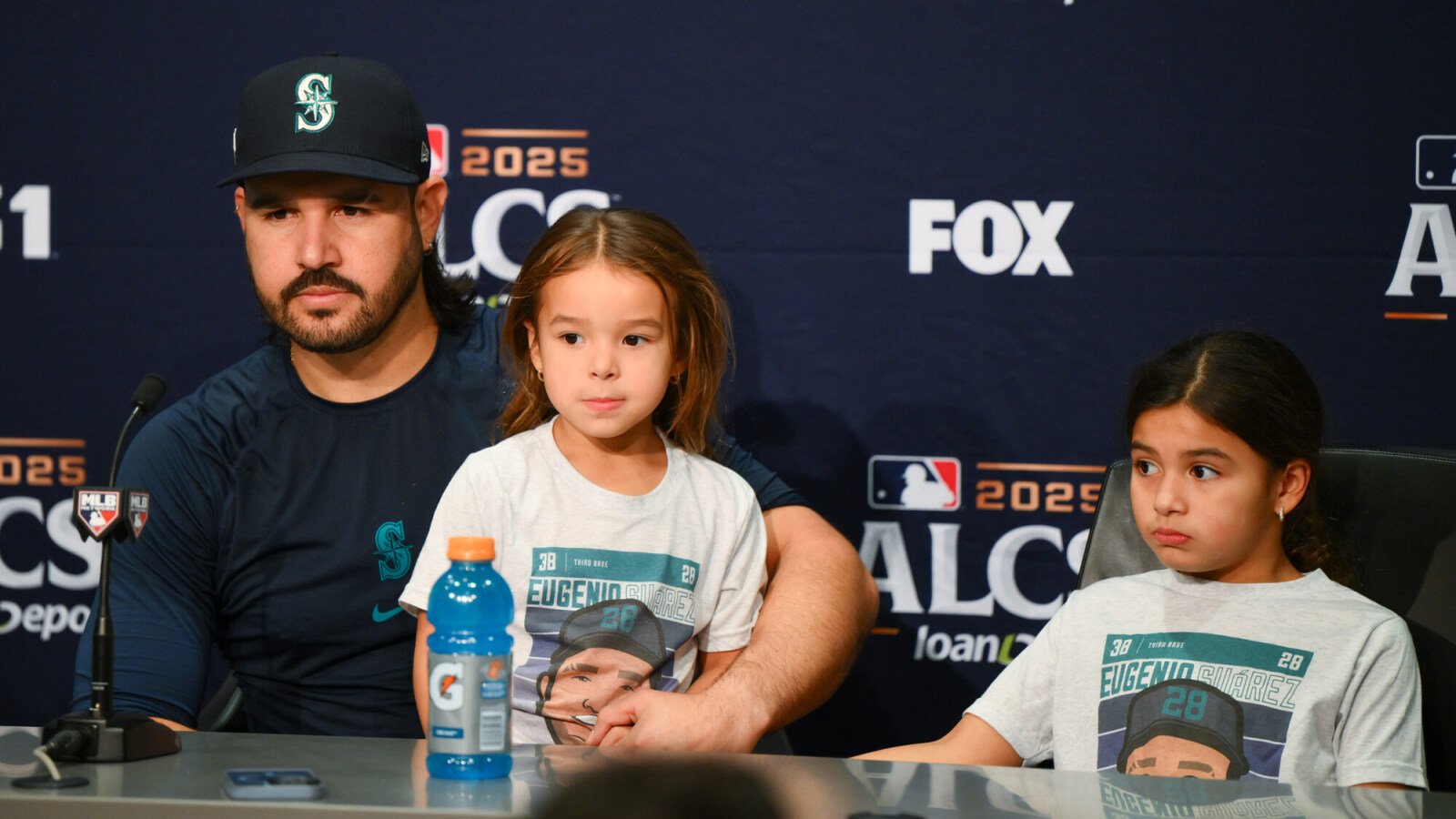 Suarez menyampaikan konferensi pers pasca pertandingan yang emosional setelah memimpin Mariners hanya terpaut satu pertandingan dari penampilan Seri Dunia pertama mereka. Dia melakukannya dengan dua putrinya yang masih kecil, Nicolle dan Melanie, di sampingnya.