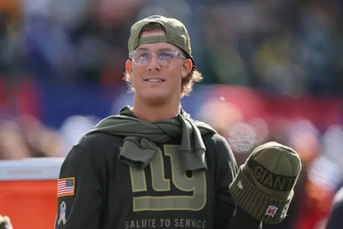 16 November 2025; Rutherford Timur, New Jersey, AS; Quarterback New York Giants Jaxson Dart (6) tampil sebelum pertandingan melawan Green Bay Packers di MetLife Stadium. Kredit Wajib: Gambar Vincent Carchietta-Imagne16 November 2025; Rutherford Timur, New Jersey, AS; Quarterback New York Giants Jaxson Dart (6) tampil sebelum pertandingan melawan Green Bay Packers di MetLife Stadium. Kredit Wajib: Gambar Vincent Carchietta-Imagne