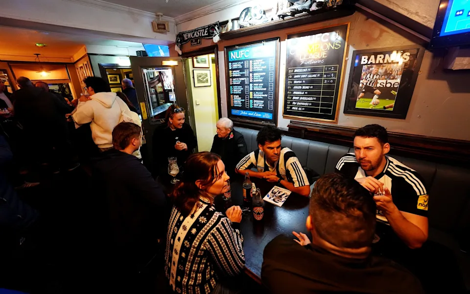 Beberapa pub sepak bola dekat dengan stadion seperti The Strawberry di luar St James’ Park – David Davies/PA