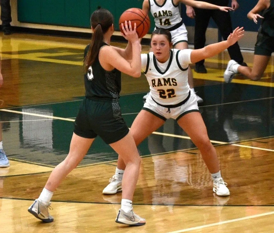 Layla Holbrook dari Apartment Rock menjaga Gracelyn Carter St. Mary Catholic Central saat kemenangan Flat Rock 53 – 41 pada Senin, 2 Februari 2026