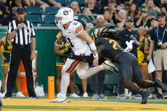 Baylor mengalahkan Auburn 483 – 415, tetapi pertahanan Macan mampu memaksa turnover pada turun tiga kali dalam kontes, termasuk dua kali di zona merah.
