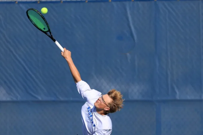 Pemain tunggal No. 2 Wilayah Barat Reed Romsaas dari Bismarck High kalah di babak pertama dari Max Mecham dari Grand Forks Red River 2-6, 6-0, 6-4.