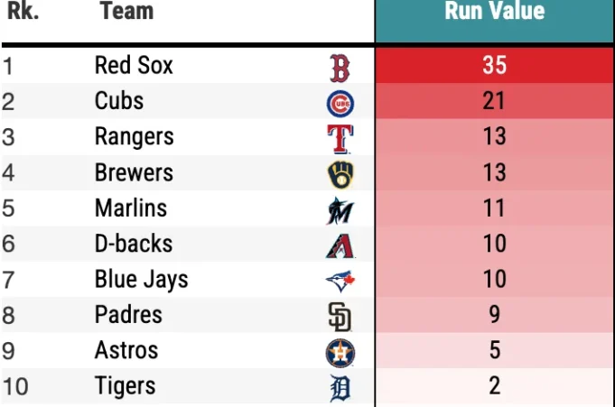 Kami masih belum tahu seperti apa lapangan tengah Red Sox nantinya, tapi mungkin Kristian Campbell tidak akan ada lagi di dalamnya. Itu akan menampilkan Willson Contreras, yang merupakan baseman pertama terbaik keenam dalam bisbol oleh Savant’s OAA. Marcelo Mayer seharusnya menjadi bek plus, meski kita belum tahu persis seberapa bagus dia, seberapa sering dia akan bermain, atau di mana dia akan bermain. Hal yang sama dapat dikatakan mengenai Isiah Kiner-Falefa. Trevor Story, David Hamilton, dan Romy Gonzalez, bagaimanapun, cukup buruk menurut sebagian besar metrik.