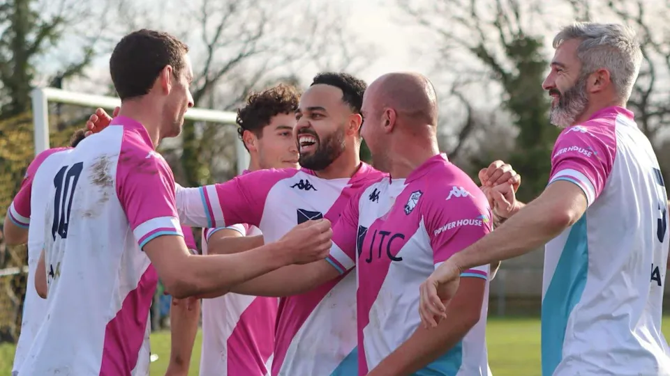 Jacket Bulls bermain di Liga Isthmian Tenggara – tingkat kedelapan sepak bola Inggris (Lauren Queree/Jersey Bulls)