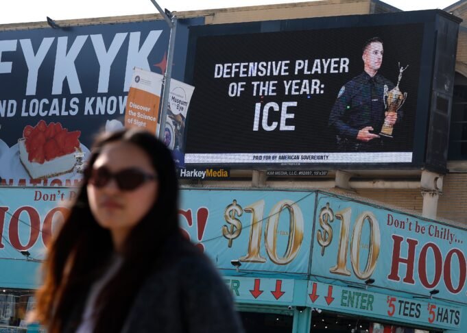 “Siapa yang membiarkan ini terjadi? Ini Memuakkan,” salah satu pengguna X menulis, sementara yang lain mengejek pakaian agen ICE, menulis, “Sejujurnya, bagian yang paling mengejutkan dari papan reklame itu adalah dia mengenakan seragam.”