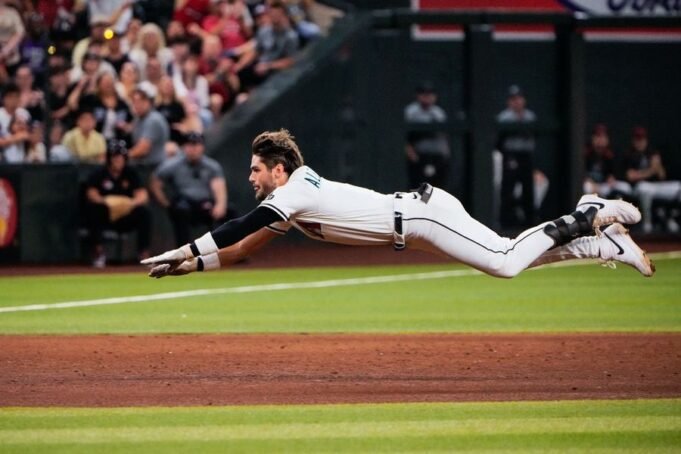 Corbin Carroll dipilih dengan satu di bagian bawah keenam sebelum mencuri kedua dan ketiga. Blaze Alexander kemudian tiga kali lipat untuk mencetak carroll dan mengejar Corbin dari permainan. Reliever Texas Jacob Webb kemudian masuk, dan dia mengizinkan ganda run-scoring Gabriel Moreno yang mendorong keunggulan Arizona menjadi 5 – 3