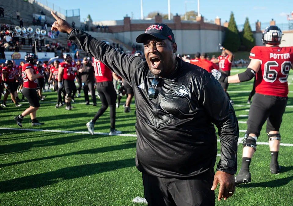Pelatih kepala Northern Illinois Huskies Thomas Hammock memberi tahu para pemainnya untuk keluar dari lapangan setelah pertandingan saat Arkansas State Red Wolves menghadapi Northern Illinois Huskies selama Camellia Dish di Cramton Bowl di Montgomery, Ala., pada hari Sabtu, 23 Desember 2023 Northern Illinois Huskies mengalahkan Arkansas State Red Wolves 21 – 19