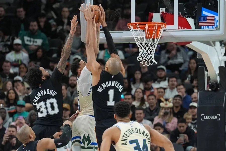 Spurs menempa keunggulan 31 – 27 setelah 12 menit permainan. Milwaukee memulai kuarter kedua dengan skor 7 -0 yang mencakup tembakan tiga angka berturut-turut dari Portis, yang terakhir hanya terjadi dua menit setelah periode tersebut berakhir. Sisa kuarter menjadi milik Spurs, dimulai dengan skor 17 – 3 dalam enam menit berikutnya. Lonjakan tersebut dibatasi oleh tembakan tiga angka dari Wembanyama yang baru saja dicukur dan memberi San Antonio keunggulan 48 – 37