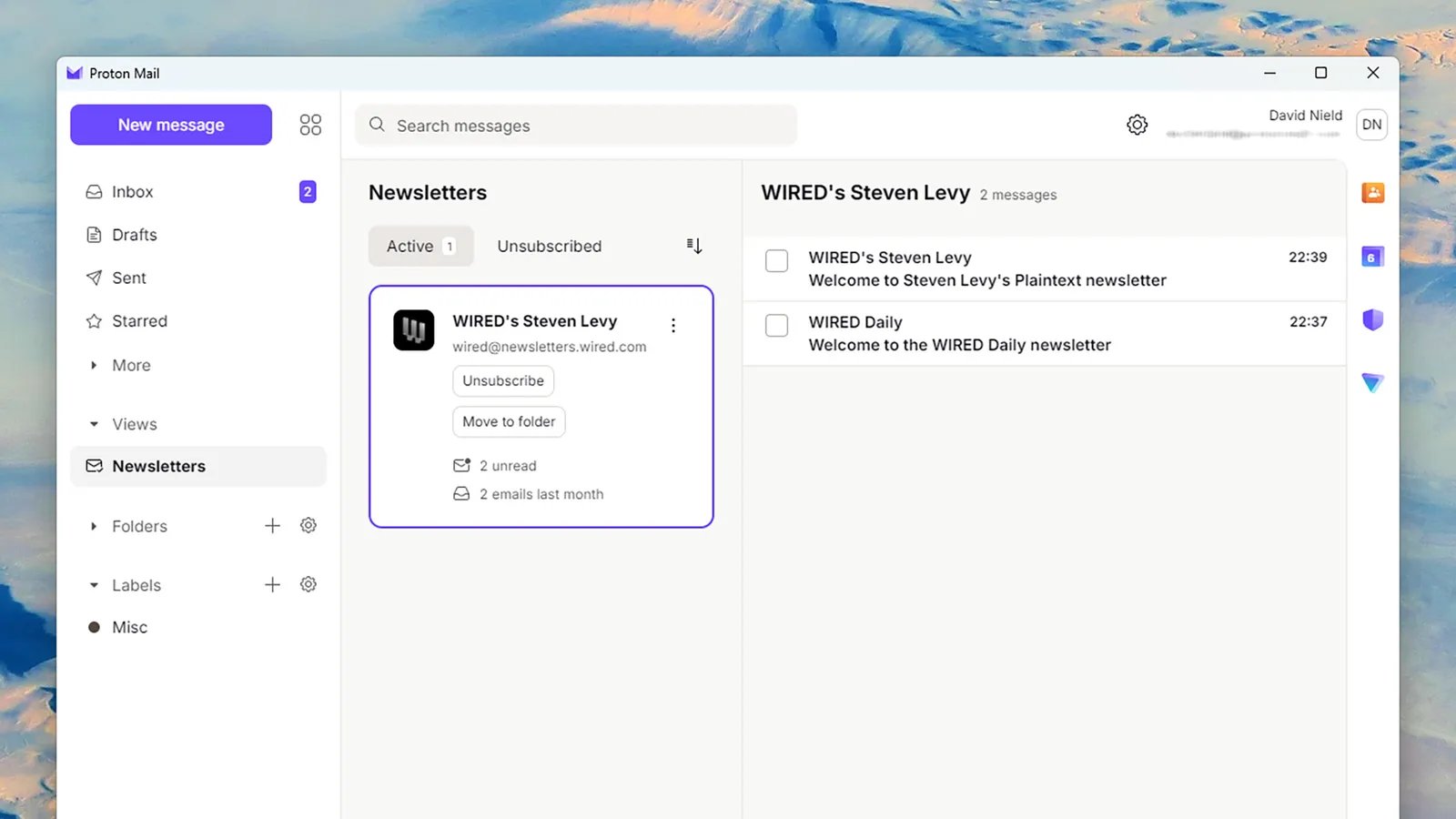 Kini ada tampilan buletin khusus di Proton Mail.Atas perkenan David Nield