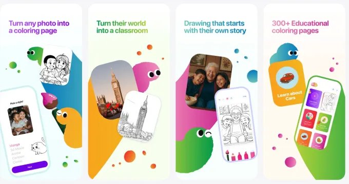 Untuk memulai dengan Splat, Anda akan mengambil gambar atau memilih foto dari Rol Kamera Anda. Anda kemudian dapat memilih gaya foto yang ingin Anda warnai — seperti anime, film 3D, manga, kartun, atau komik. Aplikasi ini kemudian akan mengubah gambar Anda menggunakan AI menjadi halaman di layar atau halaman yang dapat dicetak untuk diwarnai oleh anak-anak.