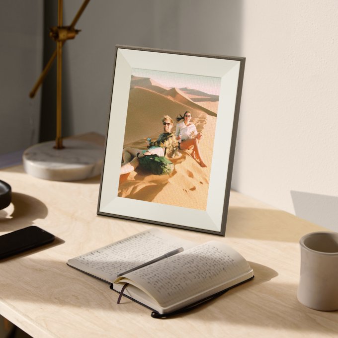 Bingkai barunya menggunakan teknologi Spectra 6 yang menghadirkan enam warna primer – putih, hitam, merah, kuning, hijau, dan biru – dengan saturasi dan kontras yang lebih baik, sehingga lebih mahir dalam menampilkan foto.