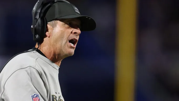 Pelatih kepala Ravens John Harbaugh mengalami minggu pertama yang membuat frustrasi ketika Baltimore menabrak kekalahan sempit 41-40 melawan Buffalo Bills.