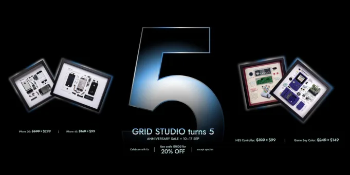 Penjualan ulang tahun akan berakhir 17 September, jadi pastikan untuk bertindak cepat sehingga Anda tidak ketinggalan. Studio Grid juga menawarkan diskon 20% di seluruh lokasi, termasuk untuk kedatangan baru, seperti Grid® iPod Classic (generasi ke -2), Chip M1 Grid®dan Wafer Silicon Grid®yang menyoroti chip A7 dan A10 Apple.