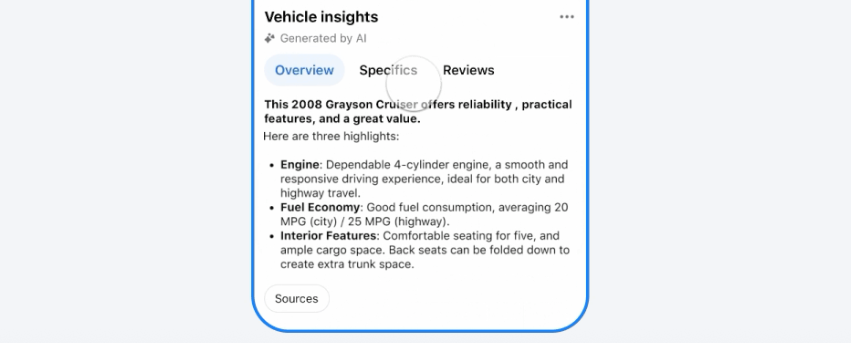 Meta akan memberikan wawasan yang dihasilkan AI tentang kendaraan yang terdaftar di Marketplace. (Meta)