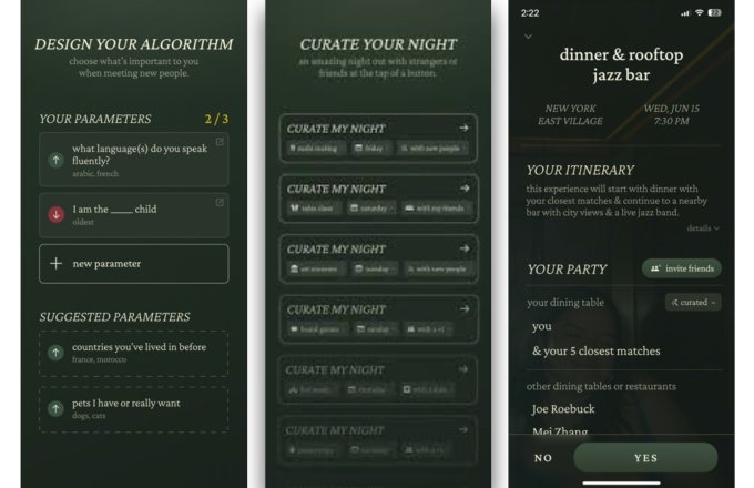 Makan malam diadakan di restoran pilihan pada Rabu malam pukul 19.00. Untuk membantu semua orang mencairkan suasana, aplikasi ini menawarkan permainan dengan pembuka percakapan. Setelah makan malam, ada pesta setelahnya di bar lokal.