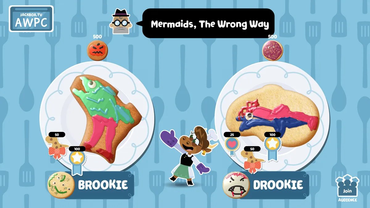 Salah satu gaya Jackbox Gamings favorit saya adalah permainan seperti Tee KO, di mana Anda menggambar sesuatu di ponsel Anda dan mencocokkan gambar tersebut dengan judul yang sangat lucu. Cookie Haus meminta Anda melakukannya dengan mendekorasi kue.