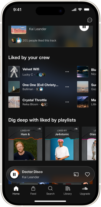 Dua fitur paling menonjol yang diluncurkan SoundCloud memungkinkan Anda melihat apa yang sedang didengarkan teman dan artis favorit Anda. “Disukai oleh kru Anda”, misalnya, adalah daftar lagu terbaru yang sedang dinikmati teman dan artis favorit Anda setiap hari. Itu muncul di beranda Anda dan menunjukkan apa yang populer di antara pengguna yang Anda ikuti.