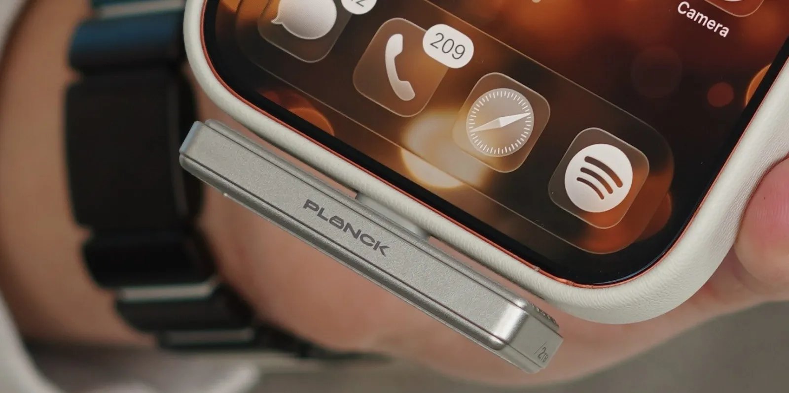 Seperti yang saya sebutkan, perangkat ini hanya berbobot 10g, jadi meski dicolokkan langsung ke iPhone, rasanya tidak ada apa-apa di sana. Karena dicolokkan langsung, tidak diperlukan kabel, dudukan, atau lampiran MagSafe. Itu hanya dicolokkan dan mulai bekerja. Mereka bahkan menambahkan sedikit fitur pada port USB-C untuk memperhitungkan orang-orang yang menggunakan casing di iPhone mereka, yang merupakan fitur kualitas hidup yang luar biasa. Beberapa kabel SSD yang tebal terkadang tidak pas saat Anda memakai casing iPhone. Bagian lain yang mereka tambahkan adalah label pada kemasannya. Bagian bawah Planck rata, sehingga Anda dapat menambahkan label ini sesuai kebutuhan. Sentuhan yang bagus. Kemudian pada kemasannya disertakan dudukan karet yang dilengkapi loop sehingga lebih mudah disimpan dan dicari. Sekali lagi, benda ini kecil, jadi jika Anda memasukkannya ke dalam jaket tebal, Anda bisa melupakannya!